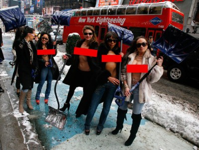 Everyone always says that New Yorkers are mean and selfish. Here’s a heartwarming story that proves that it’s not true. The strippers of the Cheetah Club (I’m a regular there—hi, Sapphire!) got together and cleaned off the sidewalks in Times Square today to make things safe for children and handicapped people. These ladies were obviously disgusted by Mayor Bloomberg’s incompetence during the Christmas blizzard and took matters into their own hands. That’s how we are as New Yorkers. We’re tough, we’re proactive, we’re compassionate. Normally, the guys that do my parents’ driveway don’t even speak English. Now, I’m not saying these women do know how to speak English, but I know that I just love their gigantic, jiggly hearts.