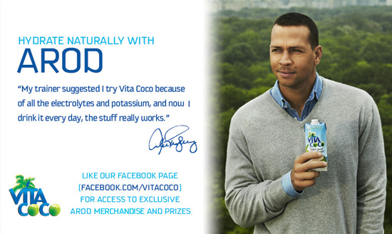 Looks like Alex Rodriguez’s newest endorsement is for coconut water. The poster says everything you need to know about him. I wonder what he’s thinking about as he’s looking wistfully in the distance. Probably banging Madonna or Kate Hudson. Yanks are gonna miss him for the next month.