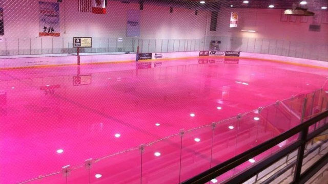 Breast cancer awareness month is taking over the world. Every player in the NFL is already wearing pink cleats, hats, gloves, you name it. Not to be outdone, Missouri State painted their ice pink. Either that or they play hockey on jello.