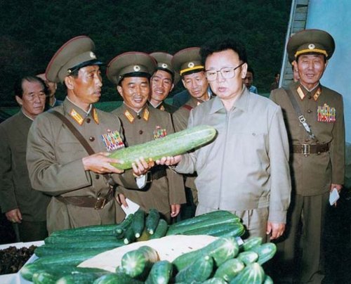 Being Supreme Leader of the Democratic People’s Republic of Korea is hard work. It’s not all dispatching airplanes to China to pick up McDonald’s and watching vintage Swedish porn. The reason that North Korea is one of the best countries to live in is that Kim Jong-Il singlehandedly inspects all means of production, you name it. Giant cucumbers? Check. Umbrellas? No question. Weapons-grade biochemicals? All in day’s work. His exploits are chronicled at Kim Jong-Il Looking At Things. If only Obama took his job as seriously.