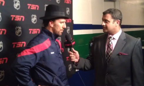 After shutting out the Canucks 4-0 on Tuesday, Henrik Lundqvist made like Don Draper in his postgame interview and rocked a fedora. It’s not just any fedora, however. Someone bought it while the Rangers were in Europe and it’s become part of the Rangers’ postgame tradition. The Broadway Hat, as it’s called, will be worn by a player after each win, presumably the player that has the most to contribute to that win. I love it. There’s nothing better in sports than gimmicks. The gold thong the Yankees used to pass around. The ’99 Knicks doing the LJ. Fried chicken, beer, and choking down the stretch for the Red Sox. Henrik has already stated that his goal is to wear the Broadway Hat after every game. Hey, if winning the Stanley Cup is too far down the road to be a serious goal, then winning he Broadway Hat will do.