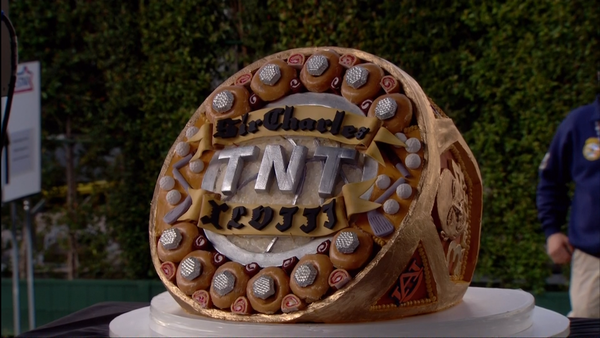 Those are Krispy Kreme donuts. The cake weighed over 200 pounds. Sir Charles ate the whole thing.