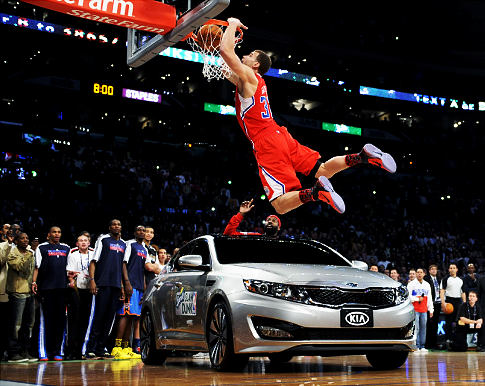 Blake Griffin won the Slam Dunk contest with a ridiculous alley-oop over a Kia Sorrento (the official car of the NBA!) with his coach Kenny Smith preaching like Billy Graham and a gospel choir singing I Believe I Can Fly behind him. Baron Davis threw the oop from the sunroof and the rest is history. Over three days, Blake slammed alleys from John Wall, Baron Davis, and Deron Williams. That’s what I call diversity. You only get that at All-Star Weekend.