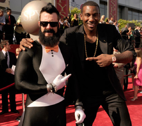 The suits at ESPN needed a star presenter at the ESPY’s (LeBron said he could only stay for the first three quarters of the show) so they called up Amar’e. He said he would do it but that he needed not one, but two sexy ladies on his arm. Maria Sharapova and Rachel Nichols (not the reporter, duh) do the trick. And look at that outfit. If a white guy tried to pull it off, he’d look like an extra in the Dick in a Box video, but Amar’e KILLS it. Cam Newton tried to steal his preppy glasses look but Amar’e was already a step ahead, like a carpenter making stairs. Plus, he made a new friend in The Closer, Brian Wilson.